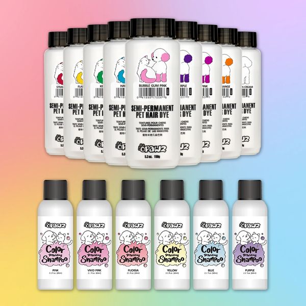 Opawz Color-Depositing shampoo provides soft, temporary pastels, lasting 3-8 washes and working only on light coats. Works well on cats, dogs, and even chickens!
